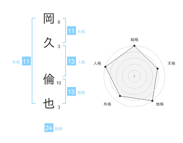 岡久 倫也さんの総格は24画の5点!