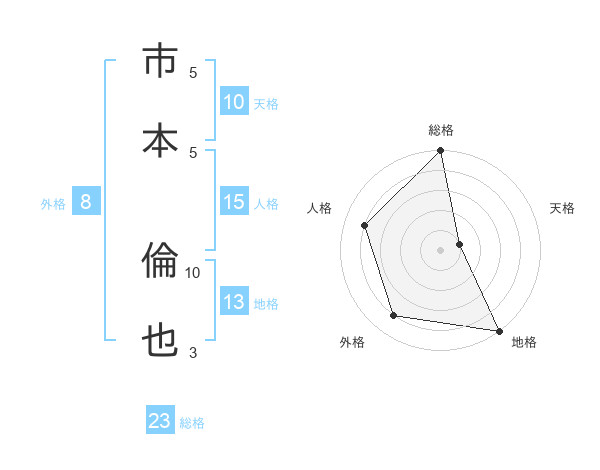 市本 倫也さんの総格は23画の5点!