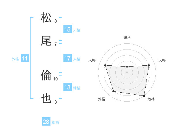 松尾 倫也さんを姓名の画数から五運を鑑定