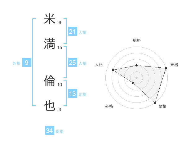 米満 倫也さんの総格は34画の2点!