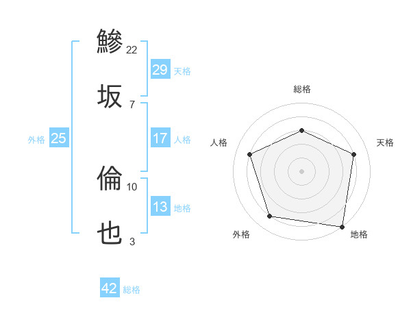 鰺坂 倫也さんの総格は42画の3点!