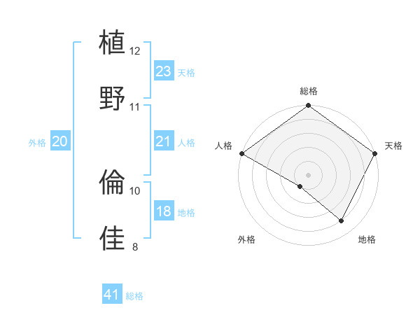 植野 倫佳さんを姓名の画数から五運を鑑定