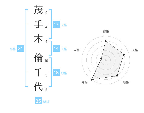 茂手木 倫千代さんを姓名の画数から五運を鑑定