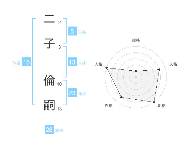 二子 倫嗣さんを姓名の画数から五運を鑑定