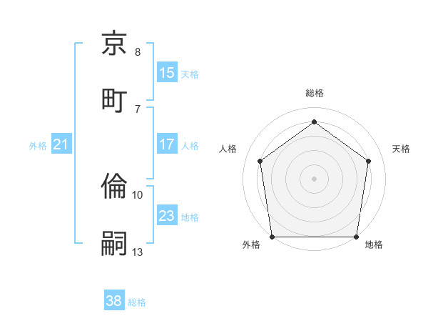京町 倫嗣さんの総格は38画の4点!