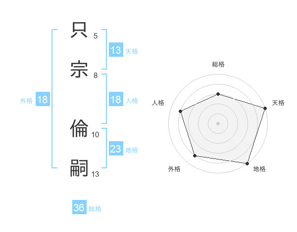 只宗 倫嗣さんの天格は13画の5点!