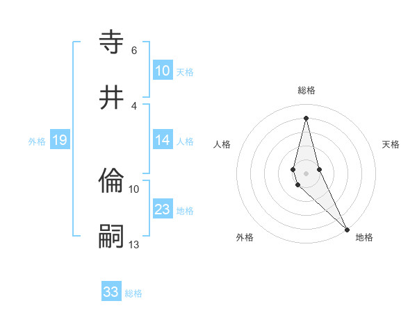 寺井 倫嗣さんの総格は33画の4点!