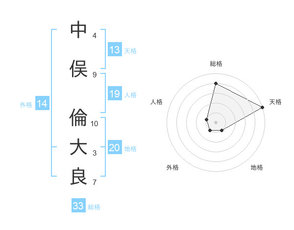 中俣 倫大良さんを姓名の画数から五運を鑑定