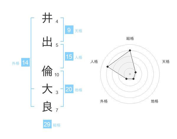 井出 倫大良さんを姓名の画数から五運を鑑定