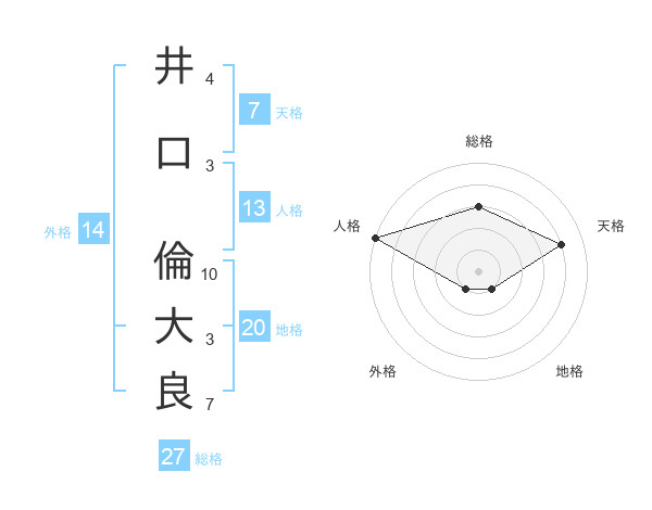 井口 倫大良さんの総格は27画の3点!