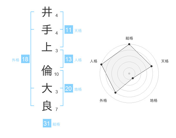 井手上 倫大良さんの総格は31画の5点!