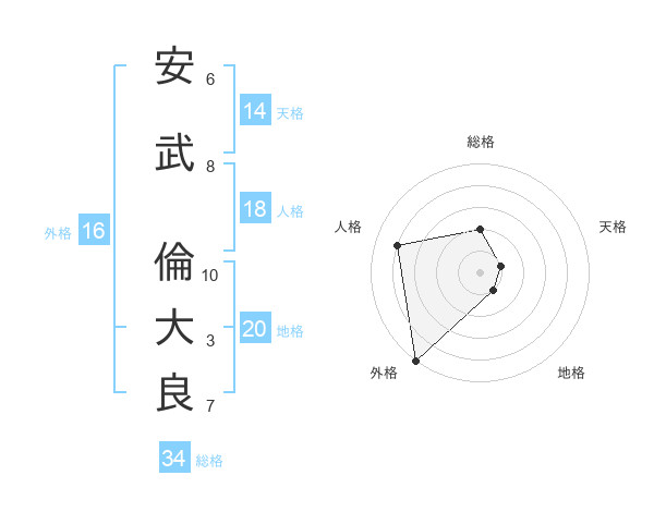安武 倫大良さんの総格は34画の2点!