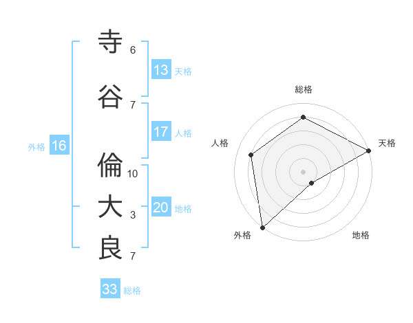 寺谷 倫大良さんを姓名の画数から五運を鑑定