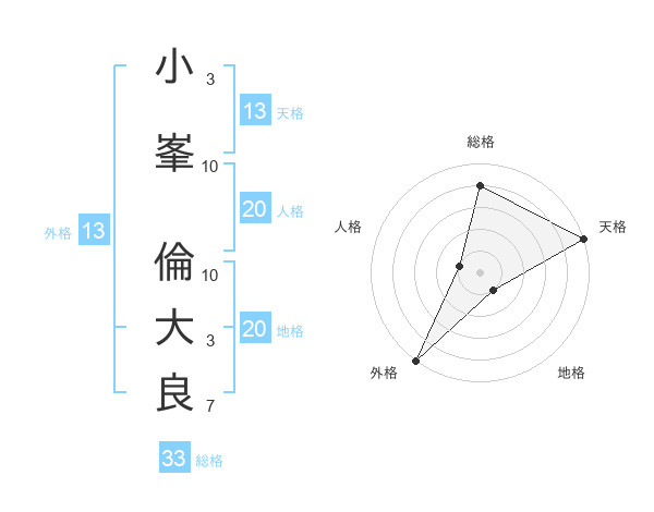 小峯 倫大良さんを姓名の画数から五運を鑑定