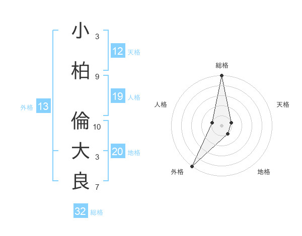 小柏 倫大良さんの外格は13画の5点!