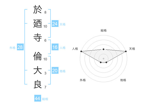 於廼寺 倫大良さんの人格は16画の5点!