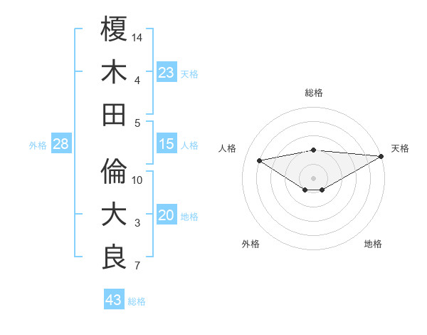 榎木田 倫大良さんの天格は23画の5点!