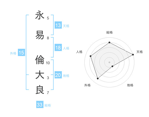 永易 倫大良さんの天格は13画の5点!