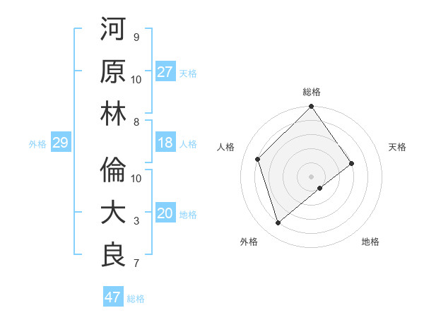 河原林 倫大良さんを姓名の画数から五運を鑑定