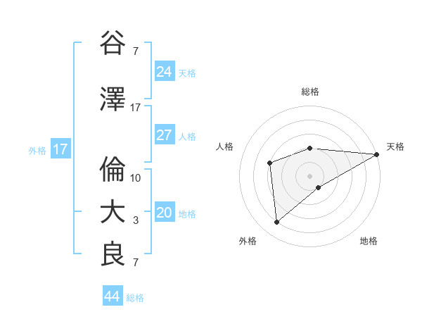 谷澤 倫大良さんの天格は24画の5点!