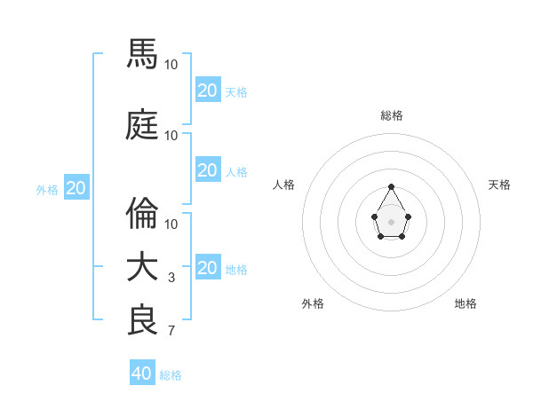 馬庭 倫大良さんの総格は40画の2点!