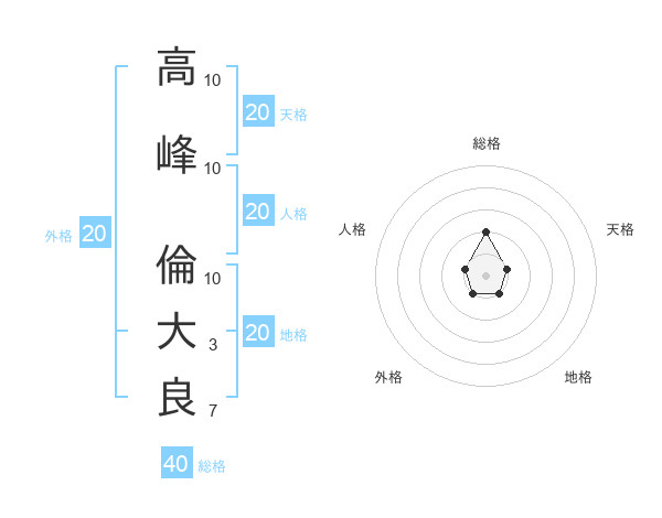 高峰 倫大良さんを姓名の画数から五運を鑑定