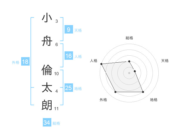小舟 倫太朗さんの総格は34画の2点!