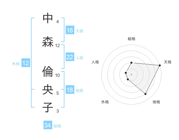 中森 倫央子さんの天格は16画の5点!
