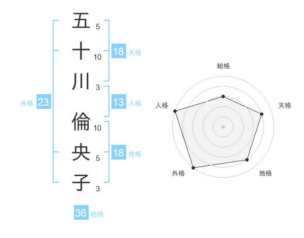 五十川 倫央子さんを姓名の画数から五運を鑑定