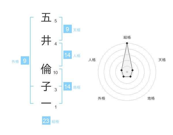 五井 倫子一さんを姓名の画数から五運を鑑定