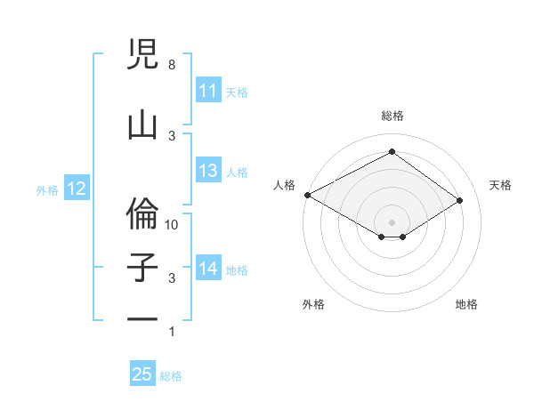 児山 倫子一さんを姓名の画数から五運を鑑定
