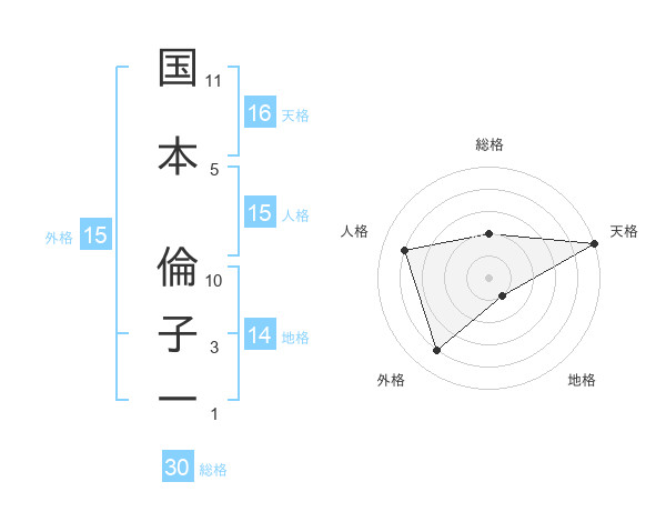 国本 倫子一さんを姓名の画数から五運を鑑定