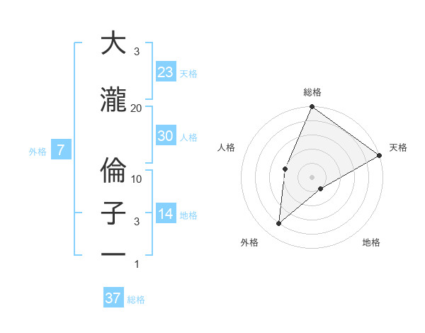 大瀧 倫子一さんを姓名の画数から五運を鑑定
