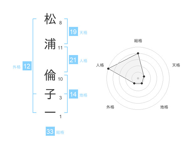 松浦 倫子一さんを姓名の画数から五運を鑑定