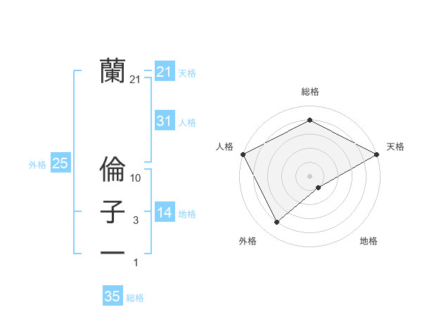 蘭 倫子一さんを姓名の画数から五運を鑑定