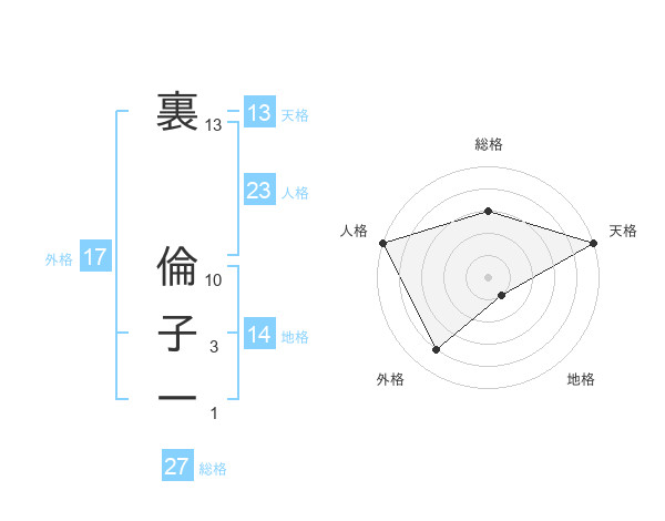 裏 倫子一さんを姓名の画数から五運を鑑定
