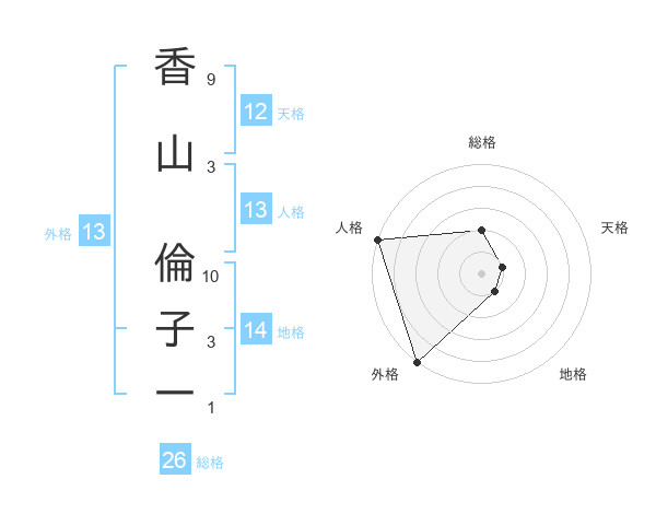 香山 倫子一さんを姓名の画数から五運を鑑定