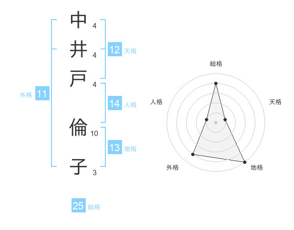 中井戸 倫子さんの総格は25画の4点