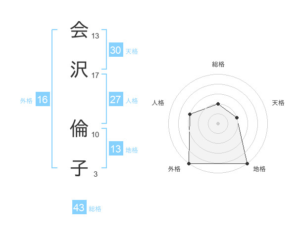会沢 倫子さんを姓名の画数から五運を鑑定