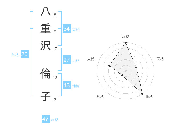 八重沢 倫子さんを姓名の画数から五運を鑑定