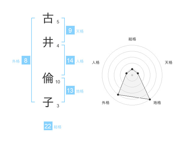古井 倫子さんの地格は13画の5点!