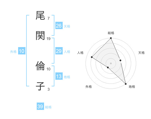 尾関 倫子さんの天格は26画の2点!