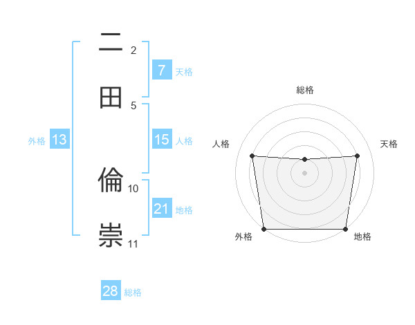 二田 倫崇さんを姓名の画数から五運を鑑定