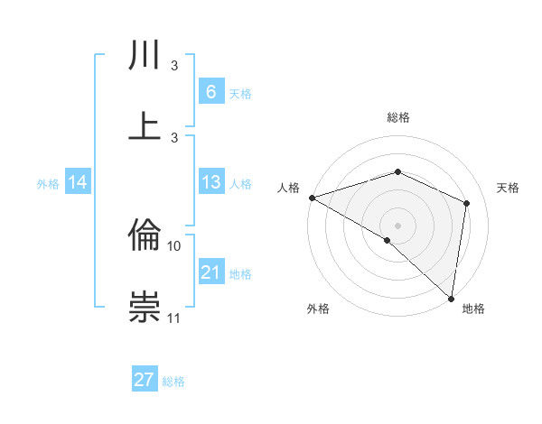 川上 倫崇さんを姓名の画数から五運を鑑定