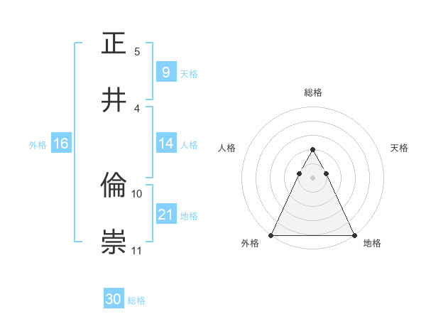正井 倫崇さんを姓名の画数から五運を鑑定