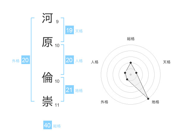 河原 倫崇さんの総格は40画の2点!