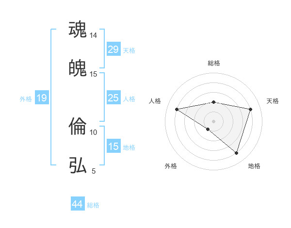 魂魄 倫弘さんの総格は44画の2点!
