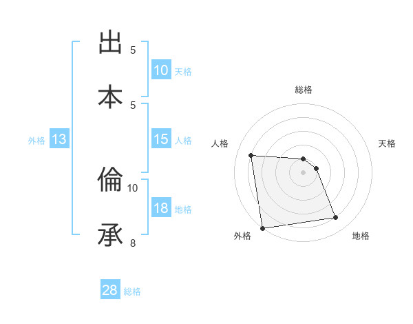 出本 倫承さんの総格は28画の1点!