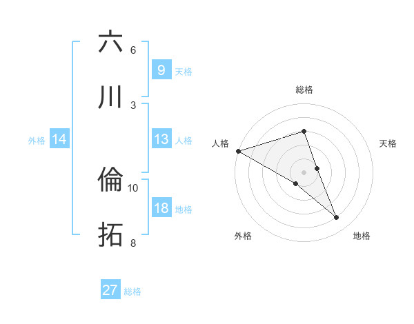 六川 倫拓さんを姓名の画数から五運を鑑定