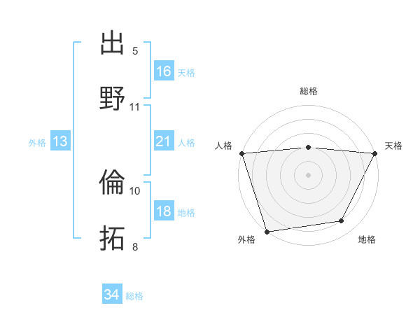 出野 倫拓さんの外格は13画の5点!